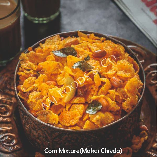 Makai Chiwda is a crunchy and flavorful snack made from crispy corn flakes, peanuts, and traditional Indian spices. Its rich taste and satisfying texture make it perfect for tea-time snacking and festive enjoyment.